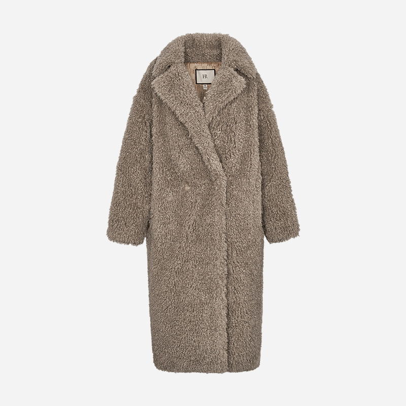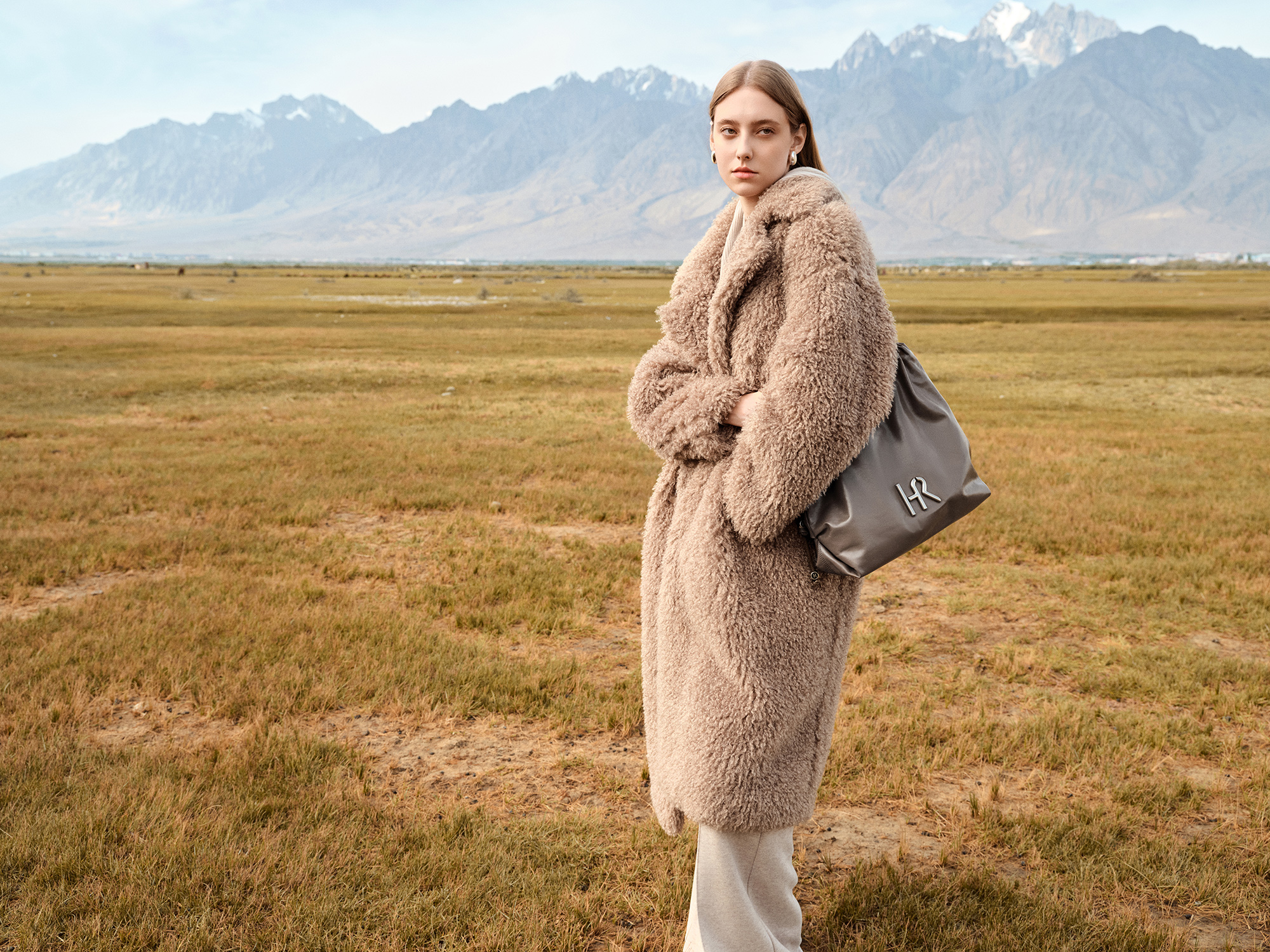 HR赫莲娜高级感24冬复古毛毛圈大翻领宽松廓形毛绒中长款大衣外套