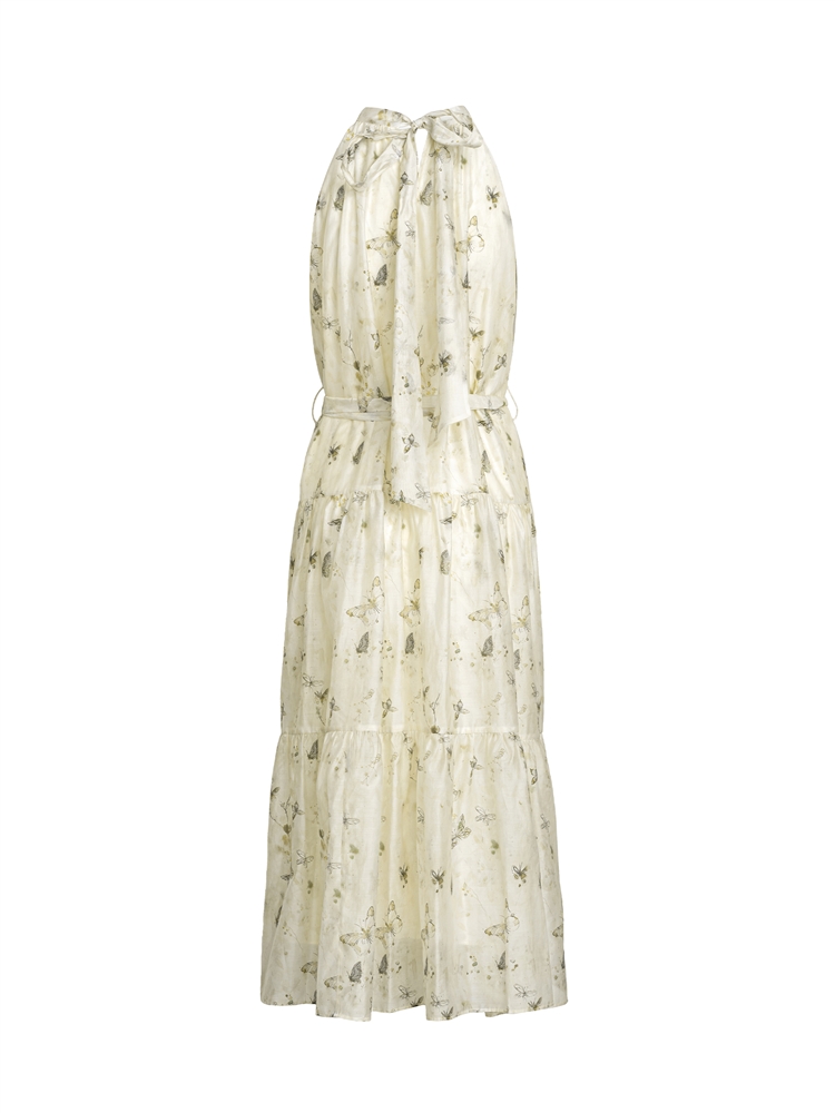 HR赫莲娜高级感国风水墨花印染挂脖连衣裙女夏新中式优雅显瘦长裙