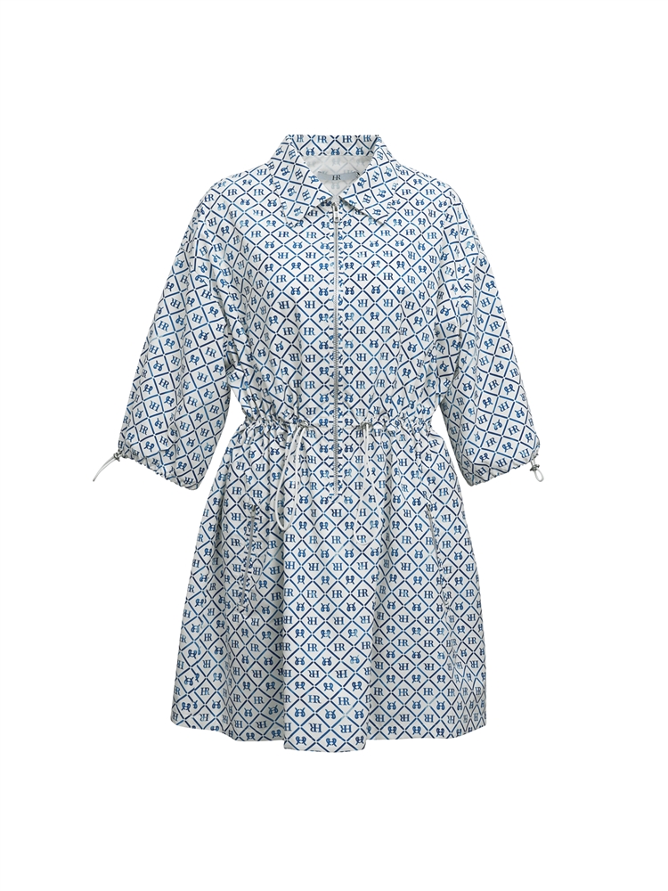 HR赫莲娜设计感小众中长款印花优雅法式连衣裙女春夏优雅气质裙