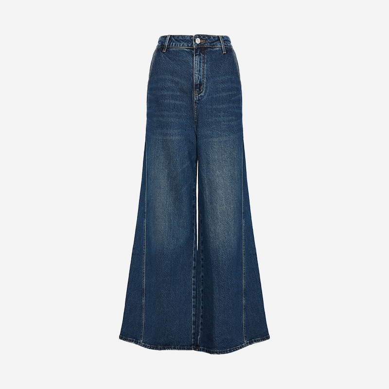 HR赫莲娜法式复古阔腿牛仔裤女24冬季新款深蓝色设计感拖地喇叭裤