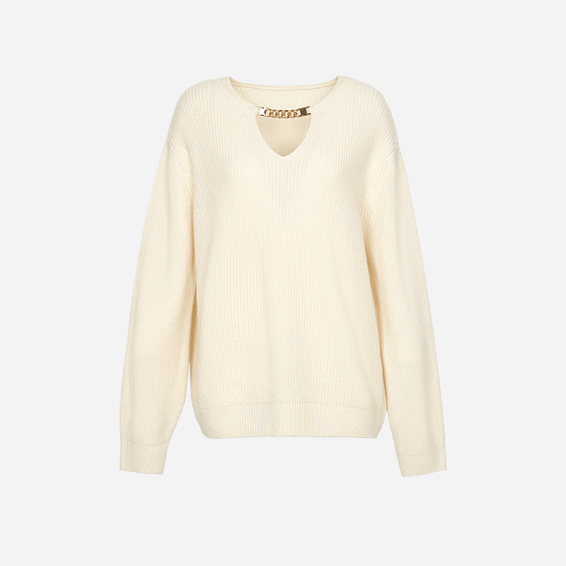 HR赫莲娜100%羊毛针织衫黑色毛衣女秋冬宽松链条学院风高级感上衣