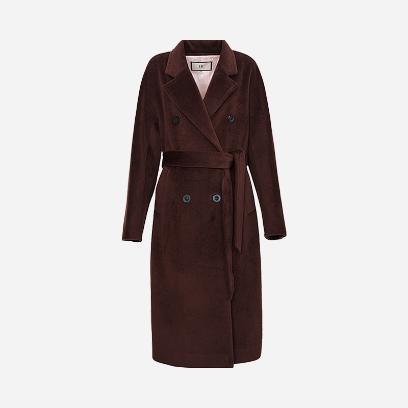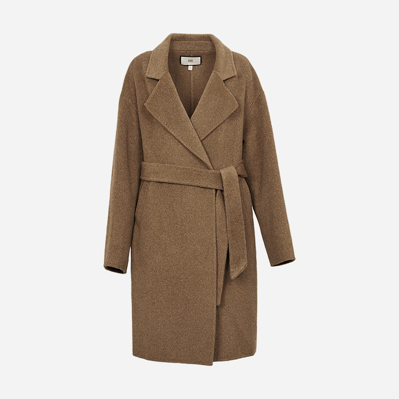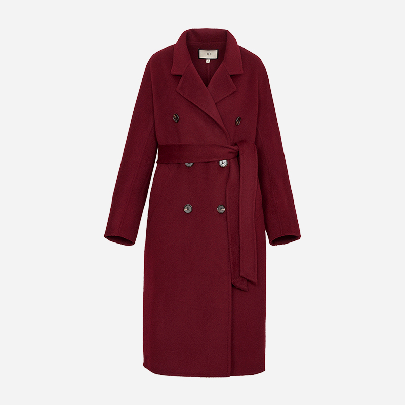 HR赫莲娜法式通勤大衣女中长款24冬季绵羊毛气质保暖系带毛呢外套