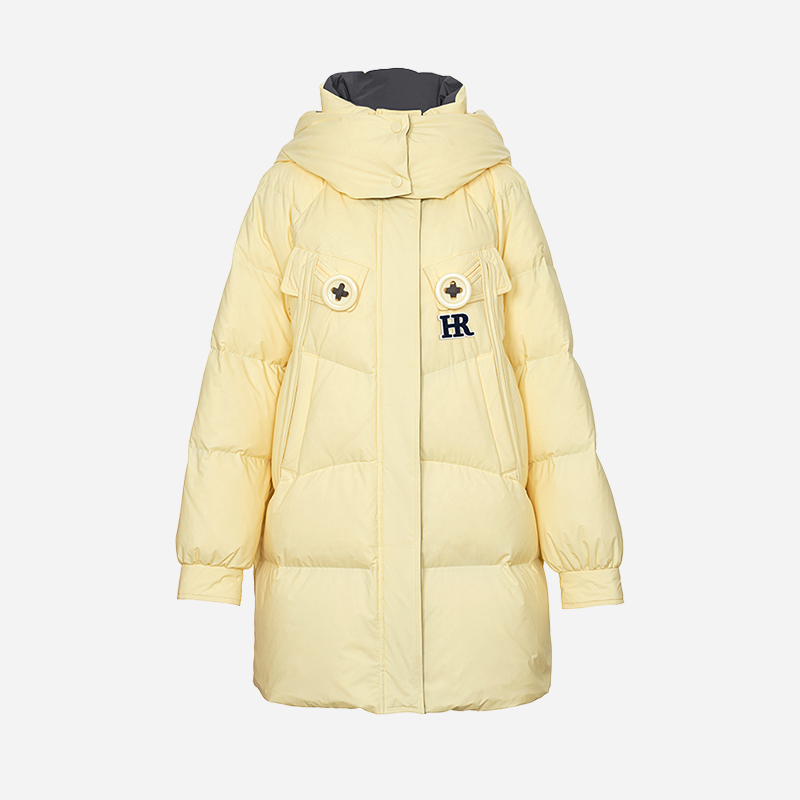 HR赫莲娜高级感撞色连帽羽绒服女24冬新面包服中长款鸭绒泡芙外套